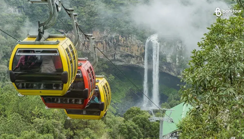 Canela, com a imponente Catedral de Pedra e o Parque do Caracol, onde a famosa cascata cria um dos cenários naturais mais impressionantes da região.